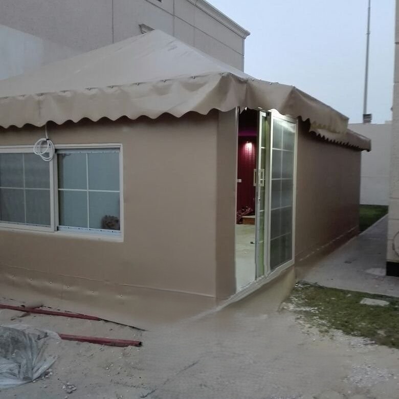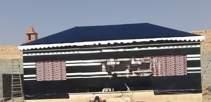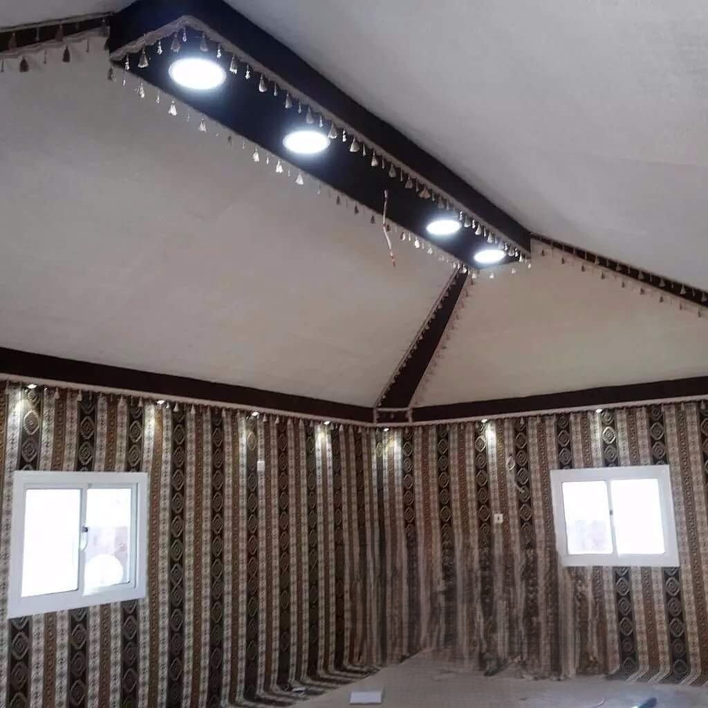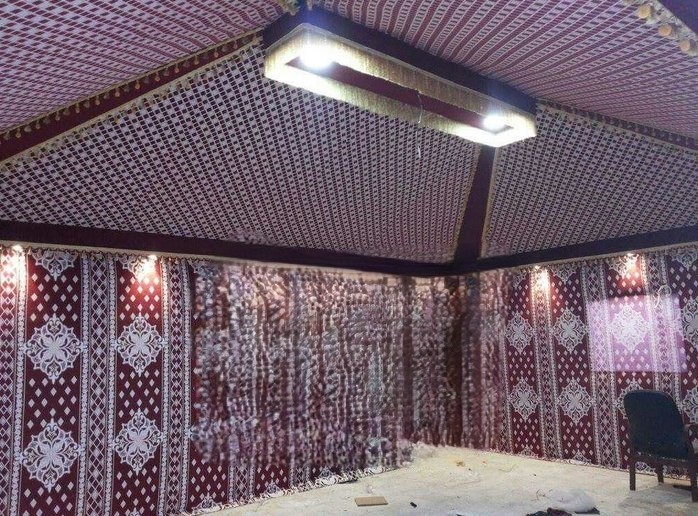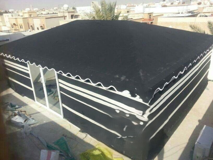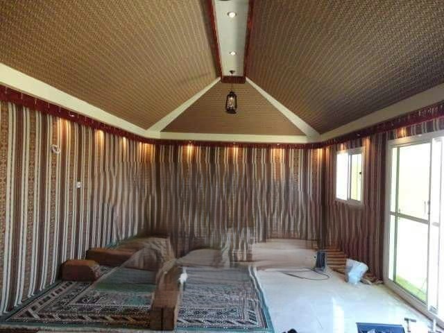 مواصفات بيت الشعر عازل مائي كوري – شعر مخطط نخبة أولى + غطاء من مادة PVC – ملتن – عازل حراري وطني – إرتفاع 2.5م أو حسب الطلب – شلش دائري قماش داخلي يتراوح سعر المتر بين 15-20 ريال – فرانشات – دناديش الأعمدة 8x8x1.25 ملي كورنيش على العقال الخارجي حسب الاتفاق – الصناديق20x20x1.25 ملي التيوبات2x4x1.25 ملي – المواسير1.5 بوصة x1.25 ملي – خشب سميك اندونيسي 9ملي – عمل واجهات زجاج فتحة الباب × فتحة المكيف الكهرباء + الالمنيوم + الفرش + الأرضيات على العميل فتحة شباك حسب الطلب